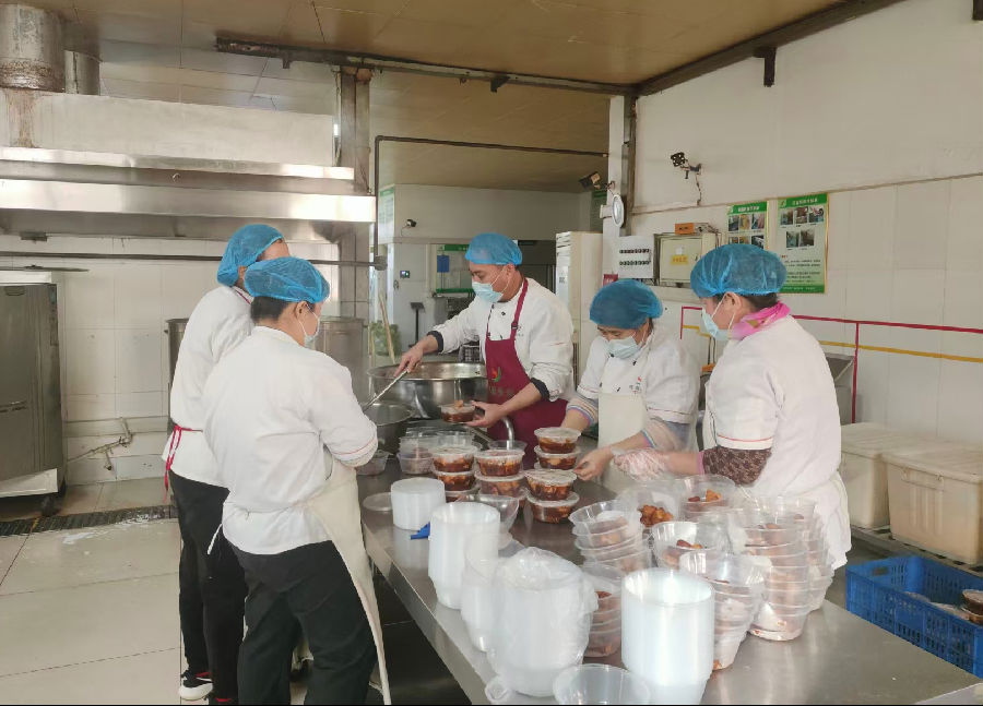 开饭的时间到了,结束了一上午的忙碌工作后,员工们看着餐盒里满满当当的土豆炖鸡块、色泽诱人的麻辣鸭腿,还有暖胃爽口的蛋花汤,大家的脸上都露出了开心的笑容。“公司太贴心了,让大家吃到这么丰盛的饭菜!”一位员工捧着餐食笑着说道。还有加班的员工将餐食打包,带回岗位与同事分享这份节日的美味。